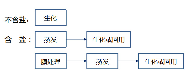 大多數(shù)工業(yè)廢水成分相對簡單,只含有少量有機(jī)污染物,處理工藝也相對簡單,一般只需要簡單的預(yù)處理(過濾、沉淀、調(diào)pH等)加上生化處理即可。有些廢水中除了含少量有機(jī)污染物外,還含有少量鹽分,則需要進(jìn)行除鹽,一般采用蒸發(fā)、膜處理工藝,出水可生化處理后達(dá)標(biāo)排放或者進(jìn)行回用。